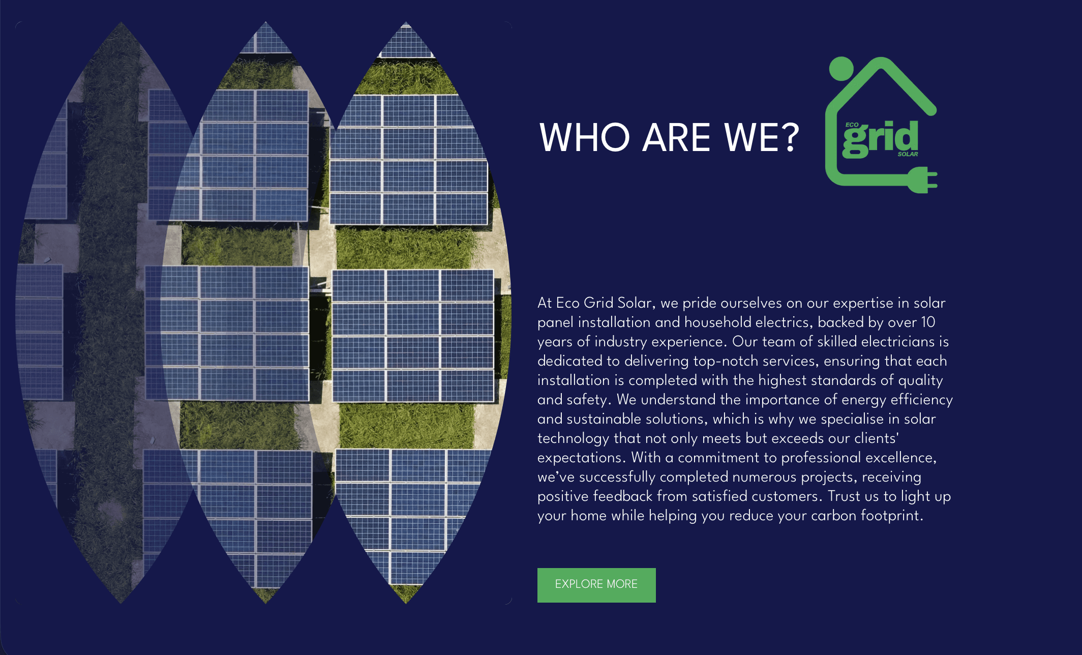 We created a striking logo featuring a house outline that incorporates the company's main line of work, residential solar panels and household electrical work. The website incorporates bold typography and colours which match the companies focus on green, renewable energy solutions. We made sure the user interface was user friendly and had an emphasis on pushing users to contact Eco Grid Solar for quotation or more information, increasing conversions.